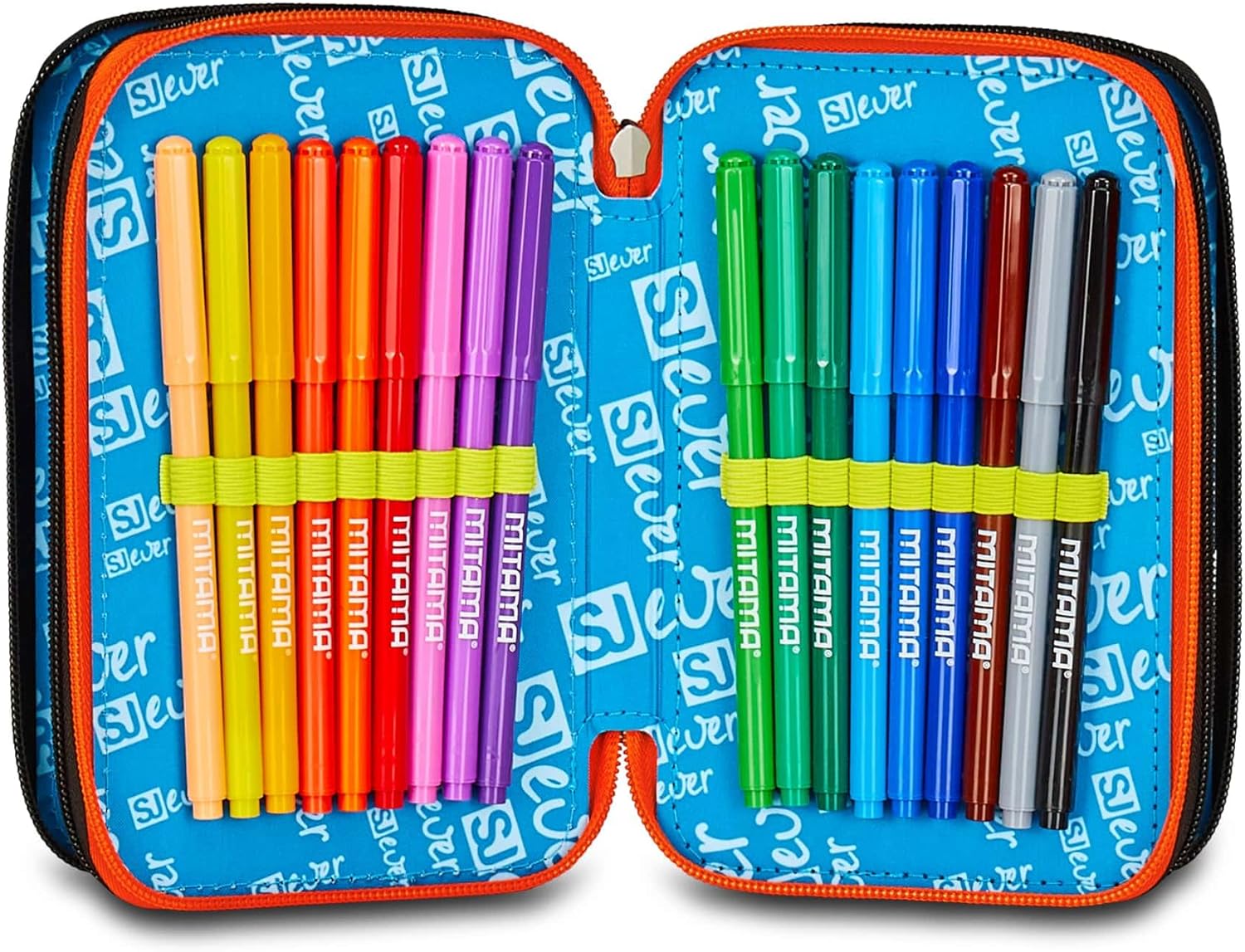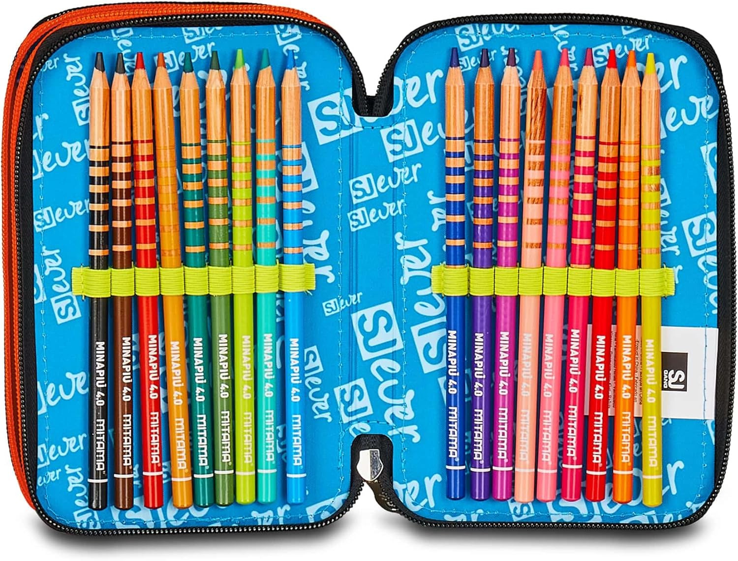 Ciao! Sono il coloratissimo Astuccio 3 zip. Dotato di 3 scomparti completi di tutto il materiale necessario per fare al meglio i tuoi lavori di scuola, puoi abbinarmi a uno zaino SJ Ever.