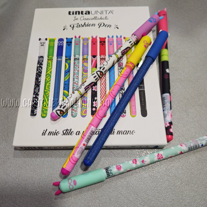 Scrivere è molto più che mettere parole su un foglio: è esprimere chi sei, raccontare il tuo stile, dare colore ai tuoi pensieri. Con le Fashion Pen cancellabili tintaUNITA ogni appunto, ogni nota e ogni disegno diventa un’occasione per distinguerti. Non più semplici penne, ma veri e propri accessori di personalità che uniscono praticità e design. Penne cancellabili tramite l’apposita gommina.