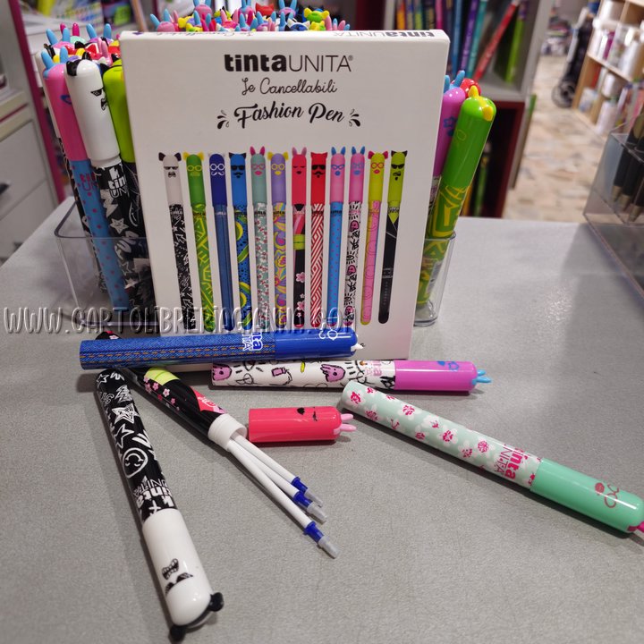 Scrivere è molto più che mettere parole su un foglio: è esprimere chi sei, raccontare il tuo stile, dare colore ai tuoi pensieri. Con le Fashion Pen cancellabili tintaUNITA ogni appunto, ogni nota e ogni disegno diventa un’occasione per distinguerti. Non più semplici penne, ma veri e propri accessori di personalità che uniscono praticità e design. Penne cancellabili tramite l’apposita gommina.