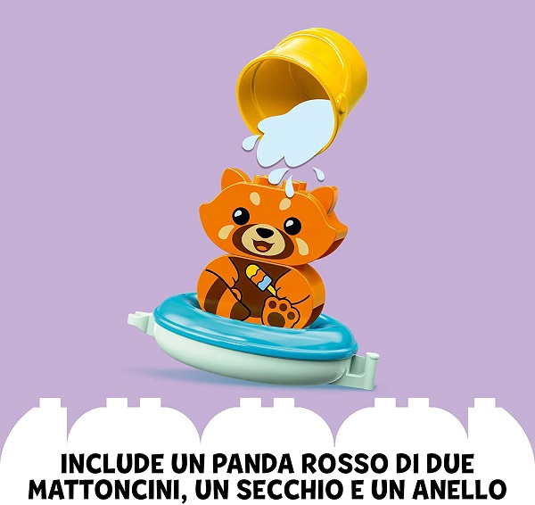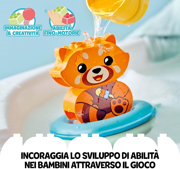 Il mio primo LEGO® DUPLO® Ora del bagnetto: Panda rosso galleggiante (10964) offre opzioni di gioco durante il bagnetto per favorire lo sviluppo dei bambini in età prescolare dai 18 mesi in su.