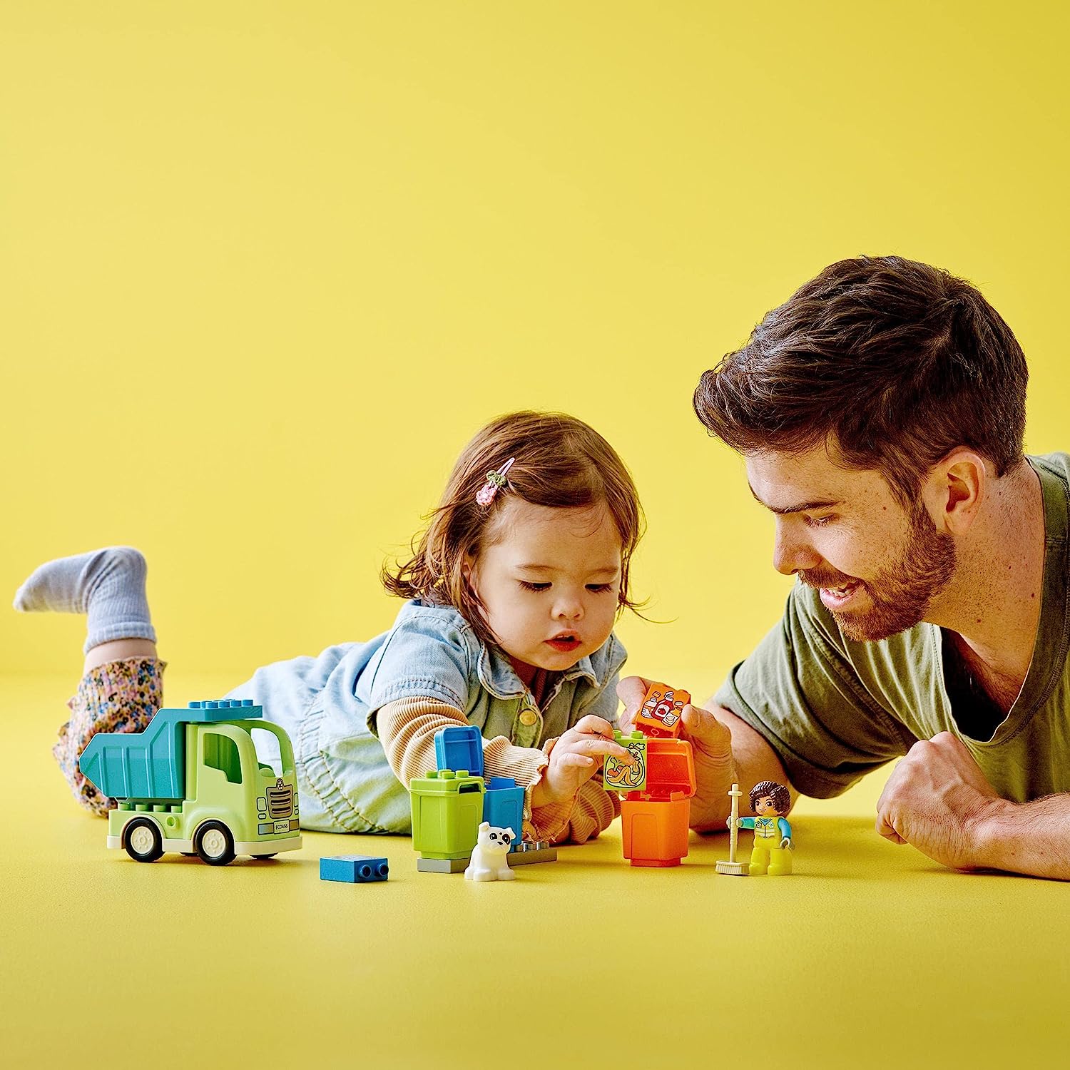 Aiuta i bambini di 2+ anni a pulire la città con il giocattolo del Camion riciclaggio rifiuti LEGO® DUPLO® Town (10987). Questo realistico camion della spazzatura permette alle giovani menti curiose di giocare con il mondo che vedono intorno a loro, imparando a riciclare, a smistare i rifiuti nei contenitori corretti e a scaricare la spazzatura nel camion.