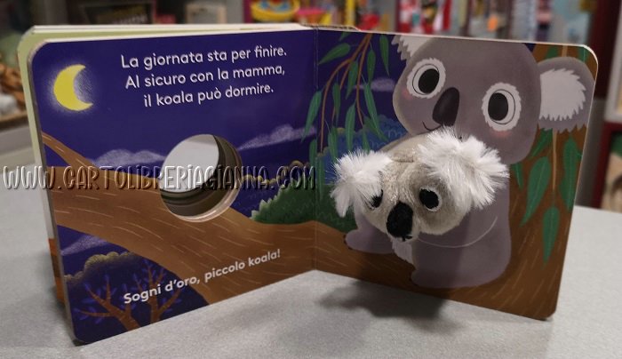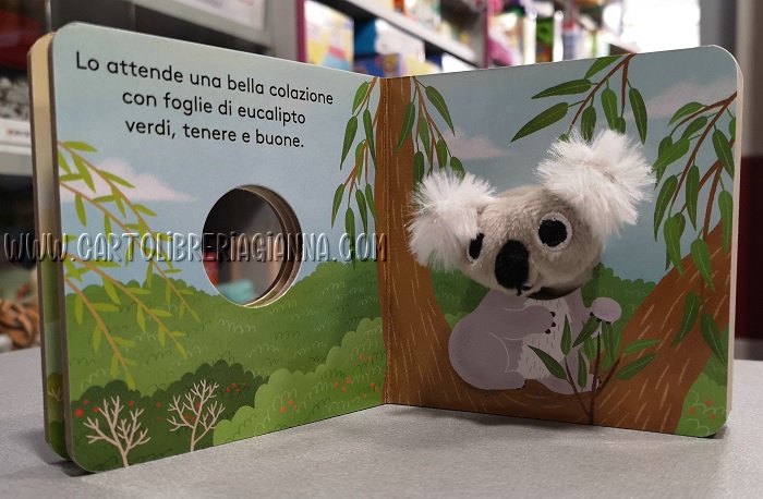 Un robusto libro cartonato, dalle pagine stondate, con illustrazioni dai colori vivaci di facile leggibilità anche per i più piccoli, accompagnato da divertenti testi in rima. Al centro del volume, un buco da cui spunta il morbido pupazzetto della piccola giraffa: un burattino da muovere con il dito per animare la storia raccontata nel libro. Ideale per il primissimo contatto dei più piccoli con l’oggetto libro.