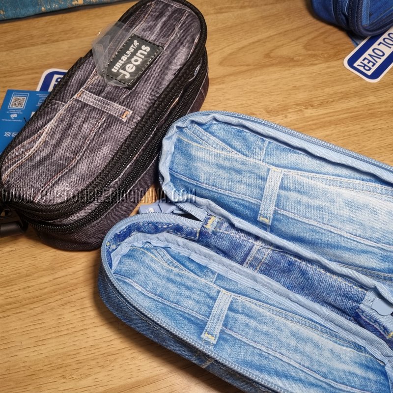 Nuova linea in tessuto con stampa effetto jeans.