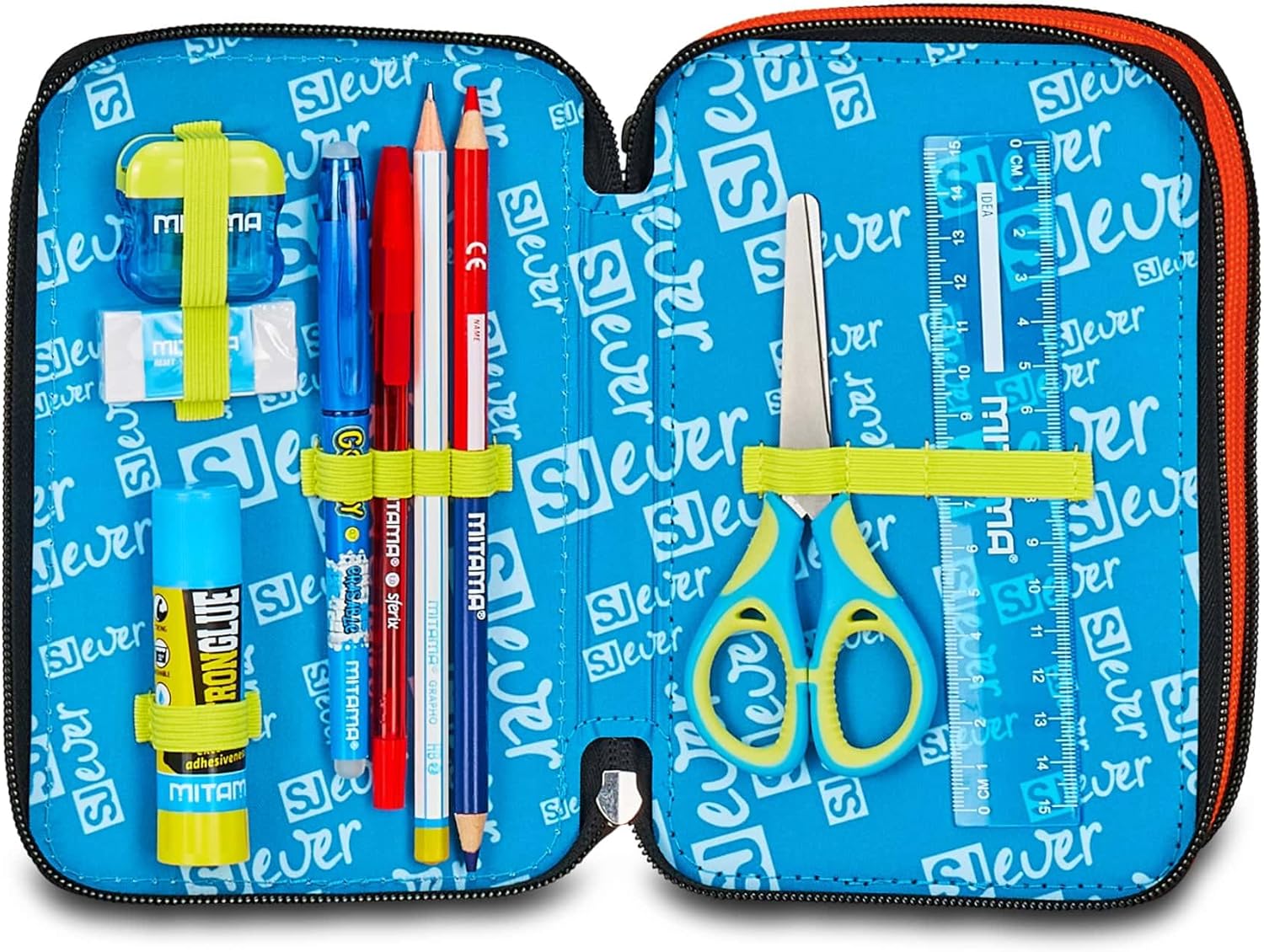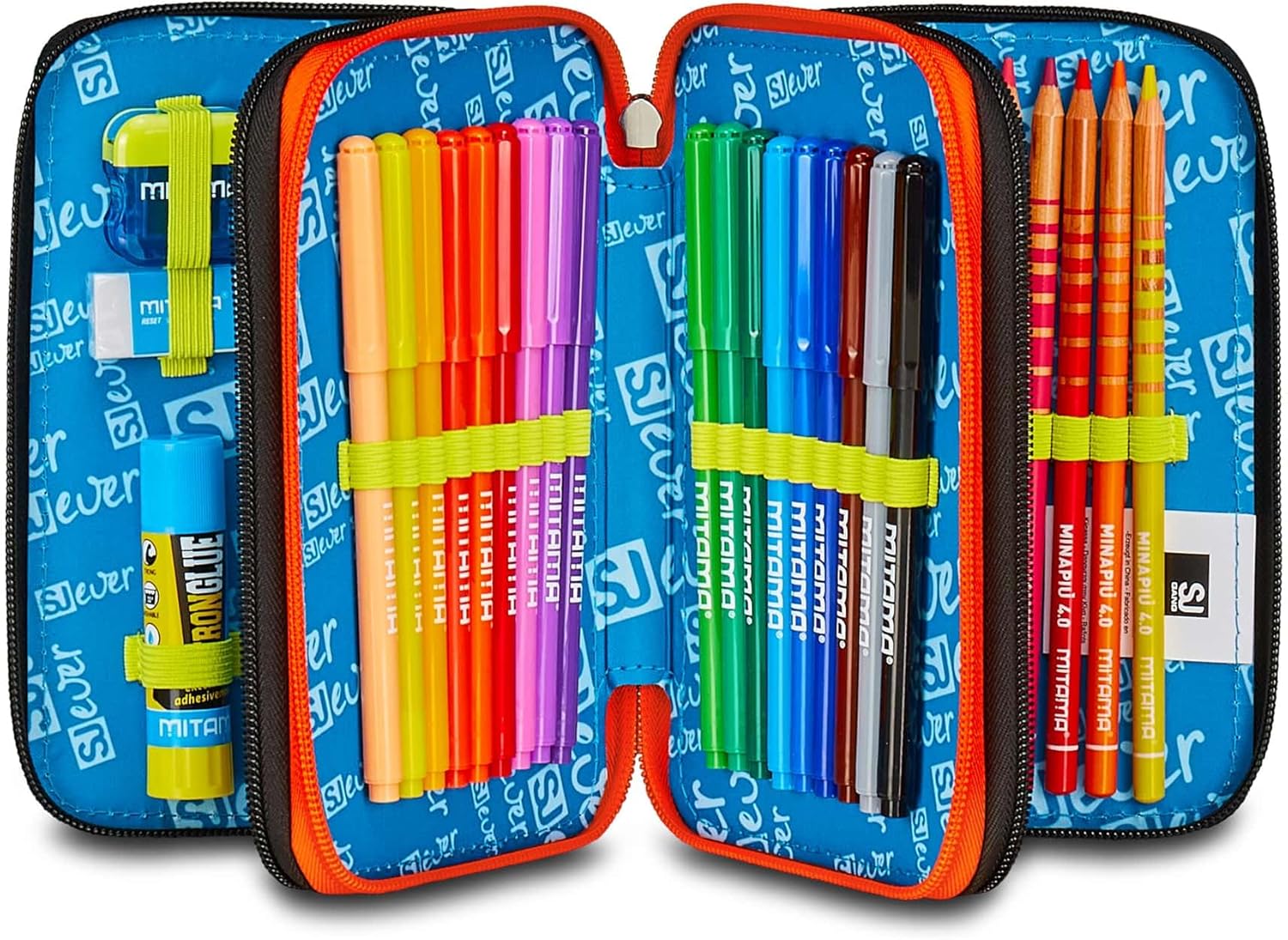 Ciao! Sono il coloratissimo Astuccio 3 zip. Dotato di 3 scomparti completi di tutto il materiale necessario per fare al meglio i tuoi lavori di scuola, puoi abbinarmi a uno zaino SJ Ever.