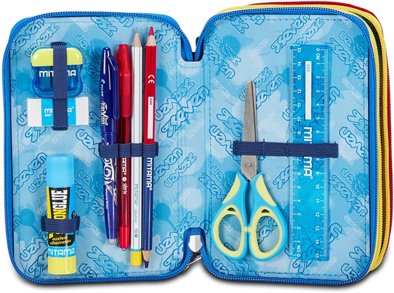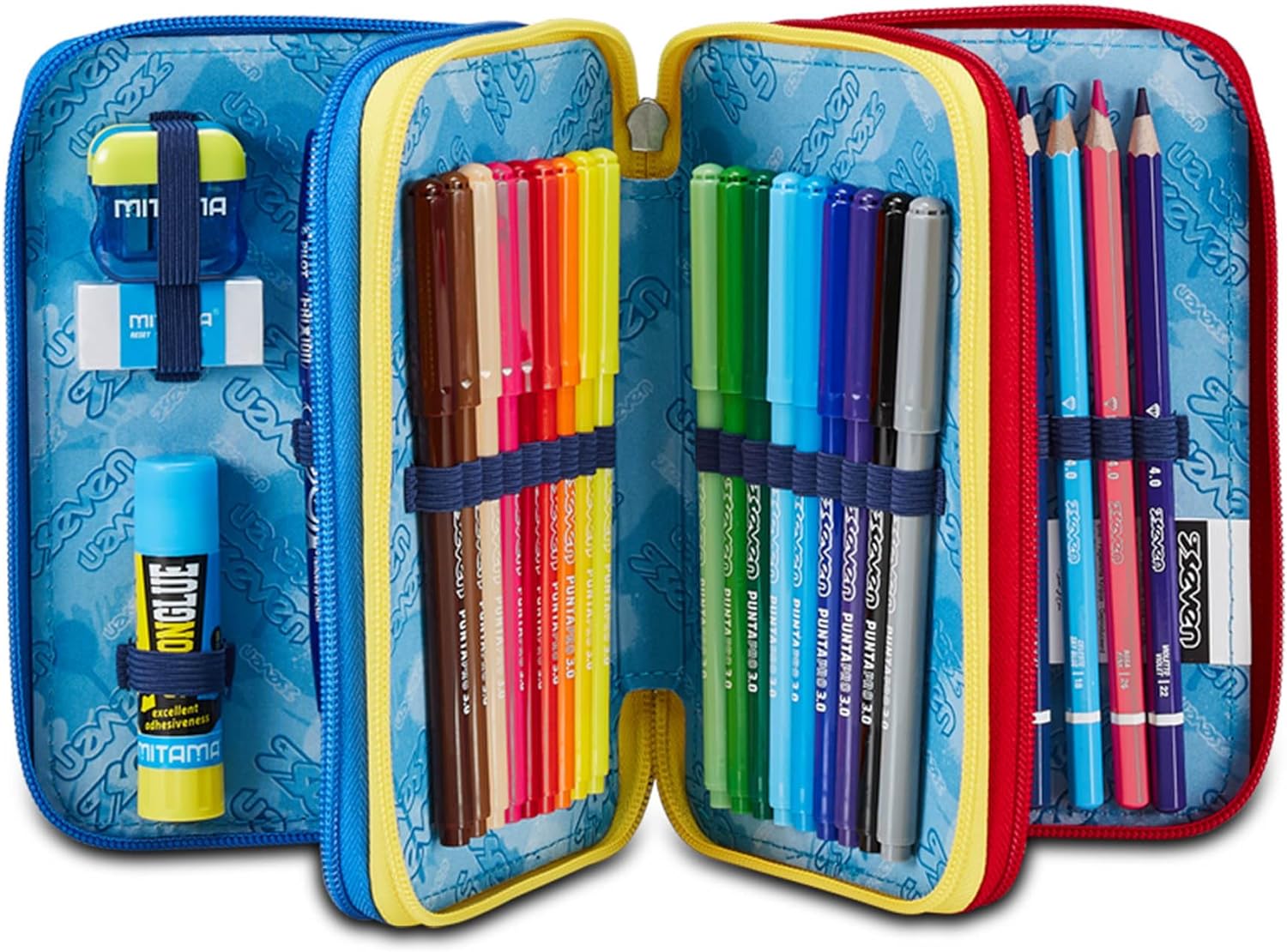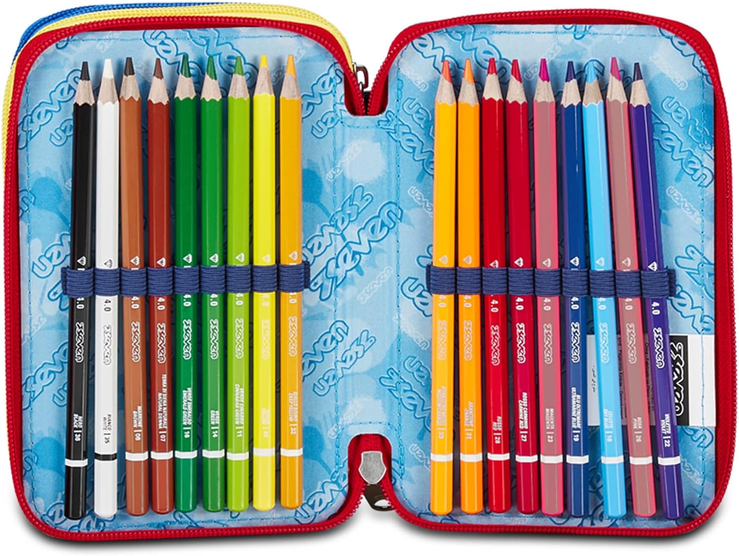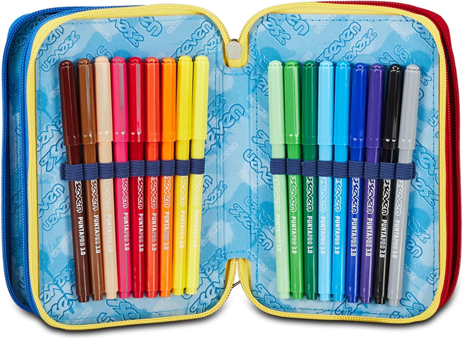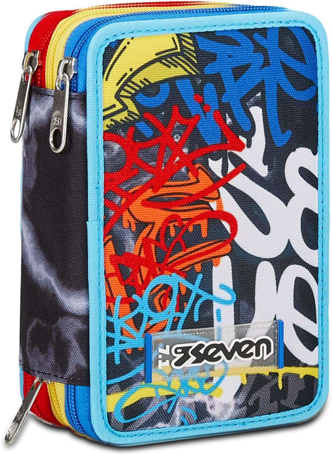 L’astuccio Seven 3 zip ha tre scomparti in cui troverai tutto il materiale necessario per la tua giornata di scuola. A te non resta altro che abbinarlo a uno zaino o a un trolley Seven.