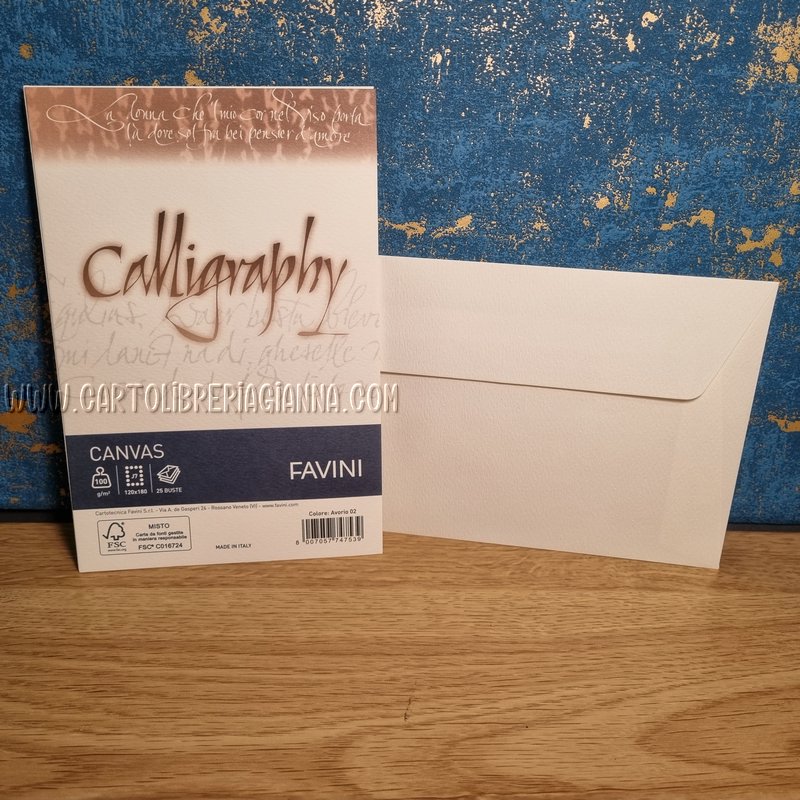 BUSTA CALLIGRAPHY CANVAS 100 GR. 12X18 CONF. 25 PZ. FAVINI – Avorio