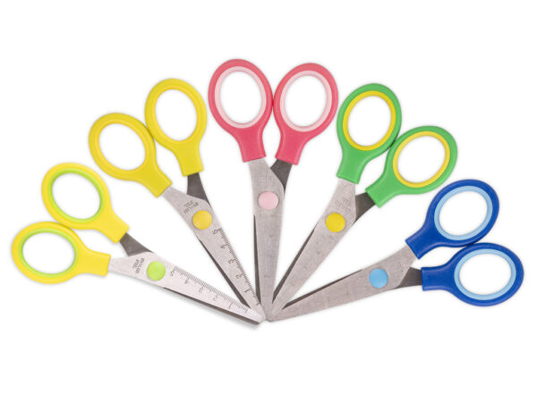Sasso batte forbici, ma forbici battono carta…e non solo! Le forbici centimetrate con impugnatura in gomma, di colore a contrasto con gli anelli, per evitare lo scivolamento, una lama in acciaio con incisione centimetrata e punte arrotondate. Confezionata in blister.