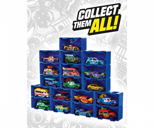 Nella confezione sono inclusi: macchina in metallo, tuning part, accessori, adesivi, flyer, collectors Box, collectors Chip.