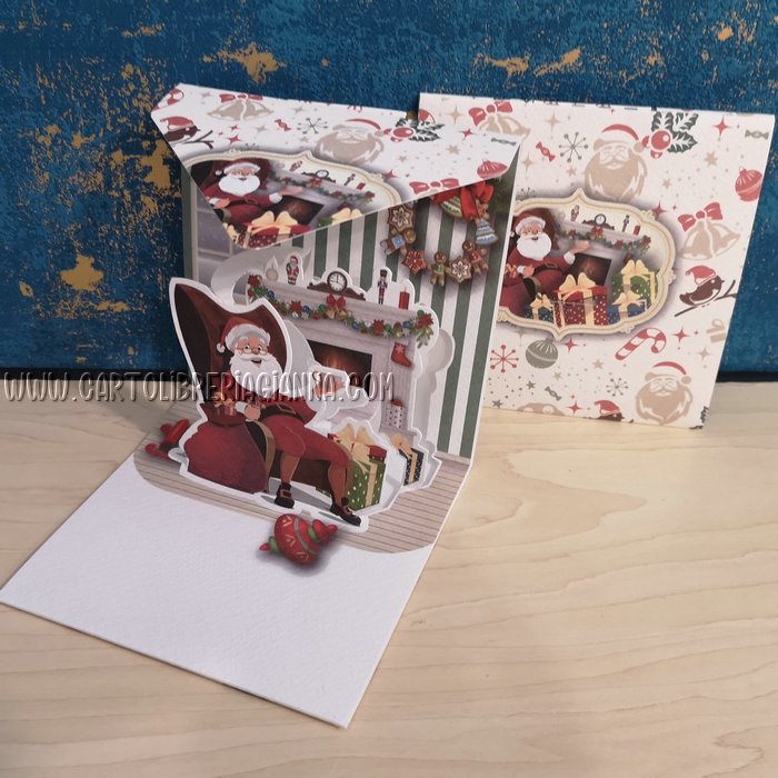 Origamo biglietto di natale – Abbracci – Babbo Natale in salotto