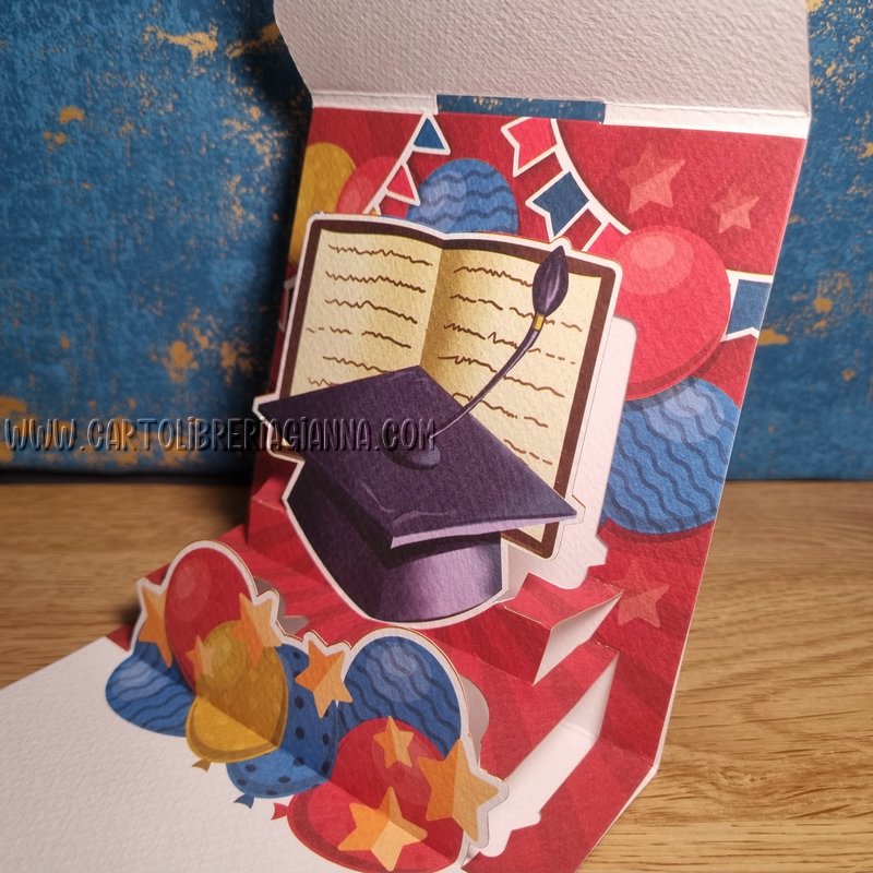 L’originale chiusura “a busta”, rivela all’apertura un pop-up bidimensionale che sorprende il festeggiato!
