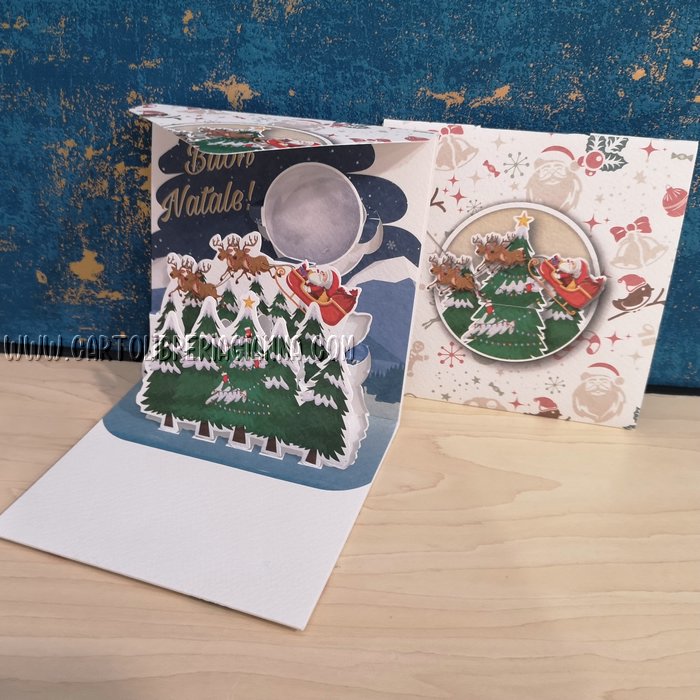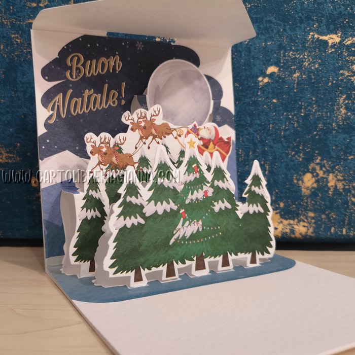 L’originale chiusura “a busta”, rivela all’apertura un pop-up bidimensionale che sorprende il festeggiato!