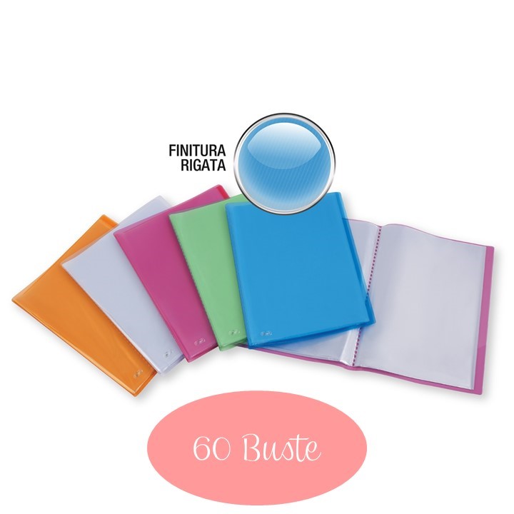 Portalistino “Lumina” , 60 interni fogli fissi a buccia d’arancia anti-riflesso .