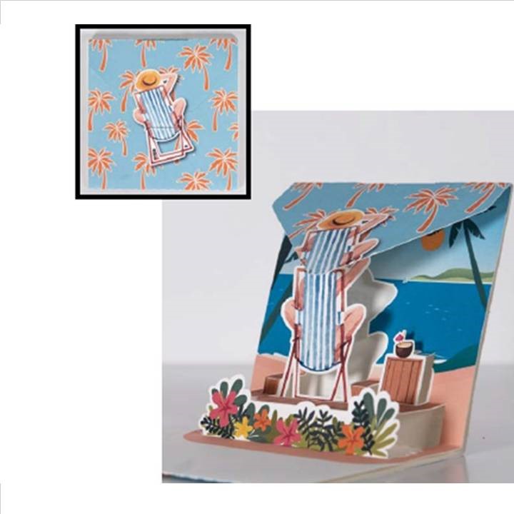 L’originale chiusura “a busta”, rivela all’apertura un pop-up bidimensionale che sorprende il festeggiato!